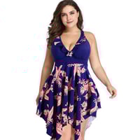 Women Plus Size Tankini Set with Sexy V Neck Swimwear Dress